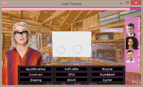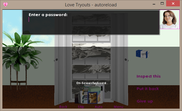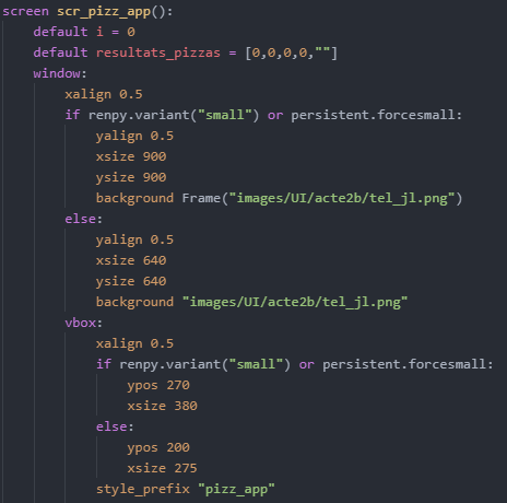 * Disclaimer: this one was of the very first Ren'Py screens I wrote. The code is really messy.