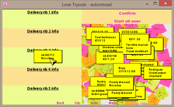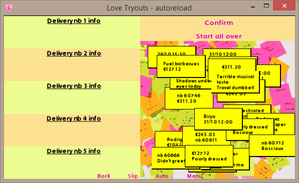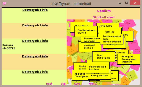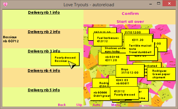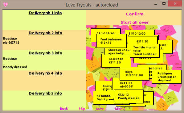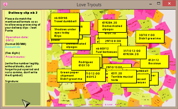 - to preserve the original gameplay, the code checks if the same kind of information is added twice (then the drag is snapped) but doesn't check the coherence of the data (meaning if it pertains to the same delivery).